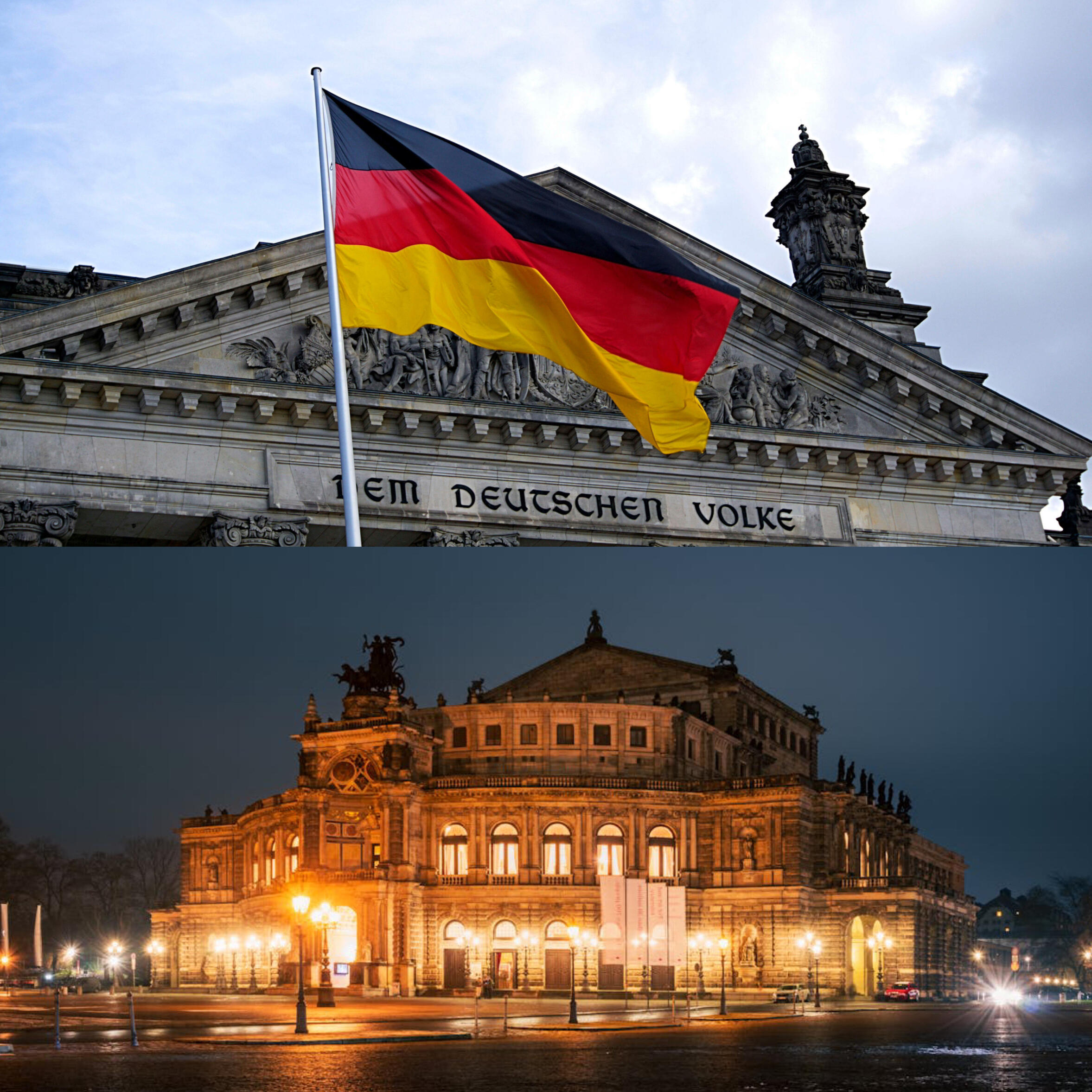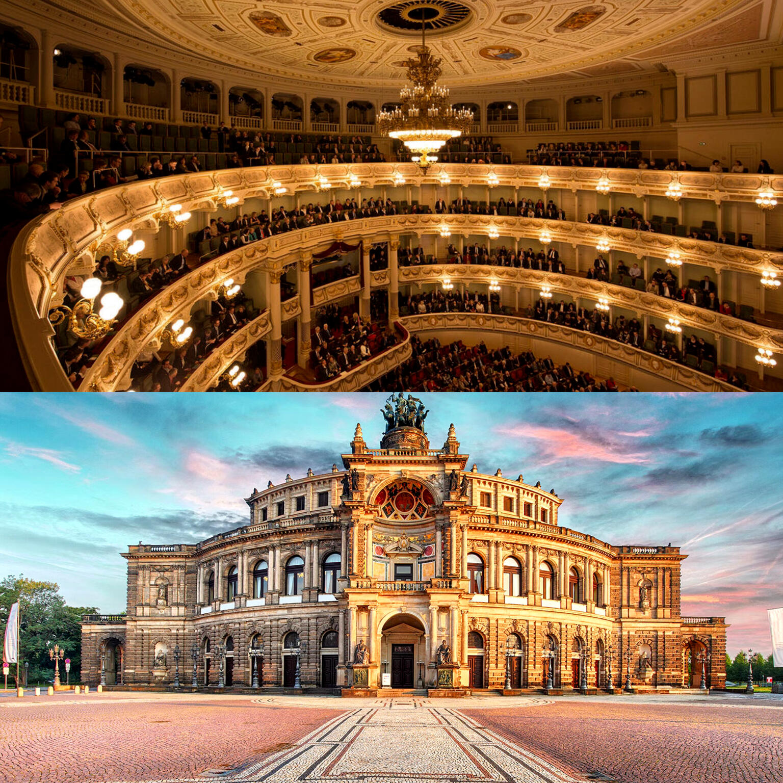 La Semperoper de Dresde, construite en 1841, est sans doute l’édifice lié à la musique classique le plus influent de l’Allemagne de l’Est. Détruite par un incendie puis par les bombardements de 1945, elle fut reconstruite à l’identique et rouverte en 1985.